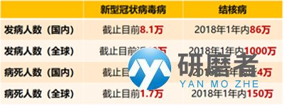 2017 年全球估計有 1 千萬人感染結核病,其中 160 萬人因結核病死亡,結核病每天會奪走 4500 多人的生命。根據中國疾控中心的數據,中國每年結核病的發病人數為86萬左右,是當下國內新冠肺炎確診人數的10倍!